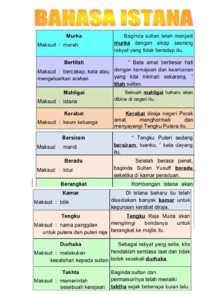 Bahasa Istana Dan Maksudnya