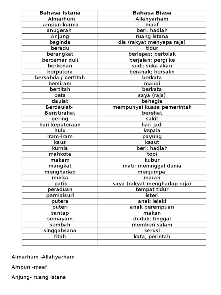 Contoh Bahasa Istana